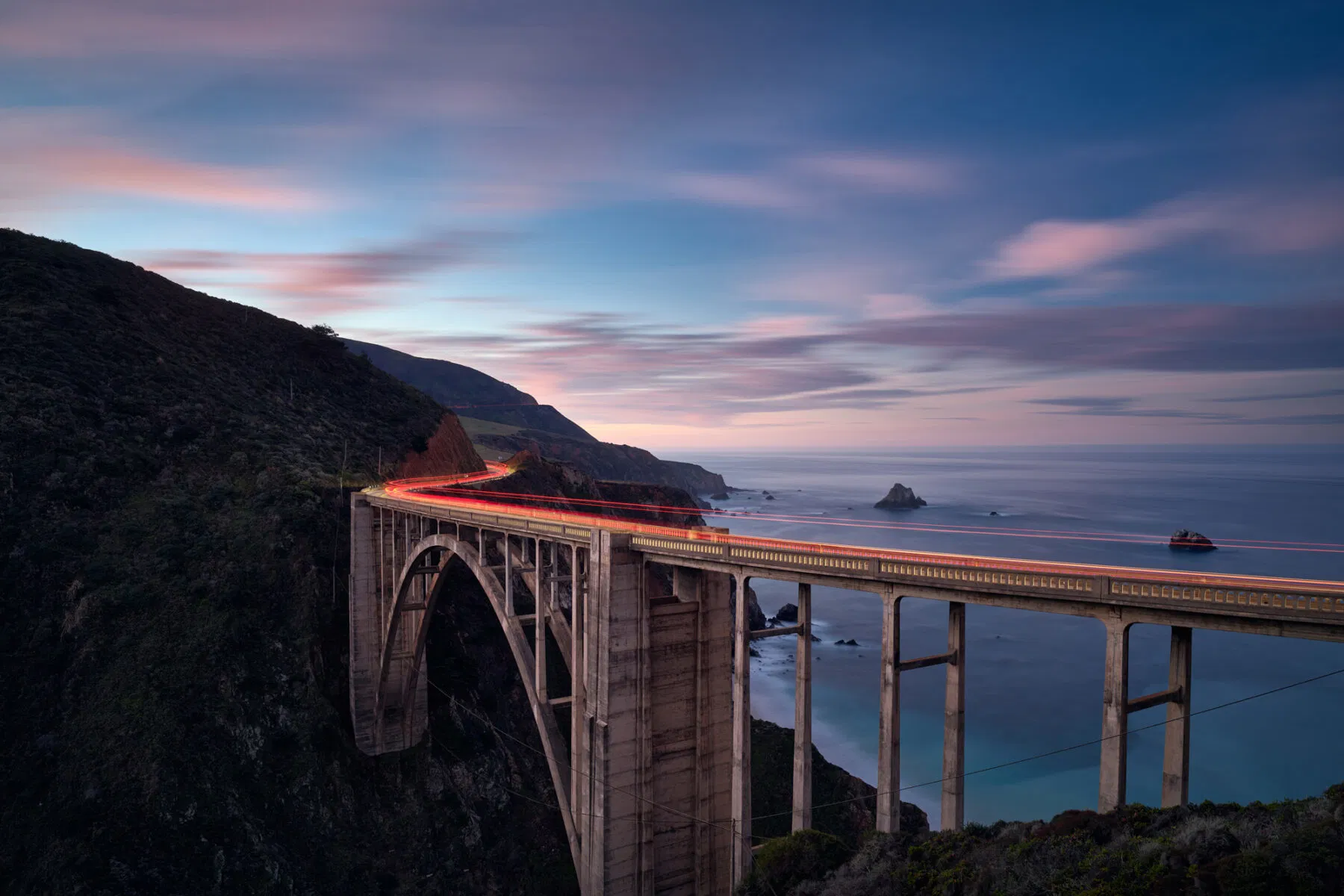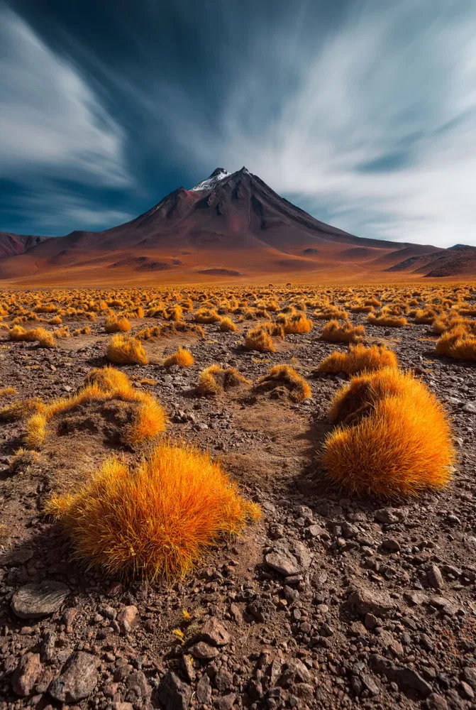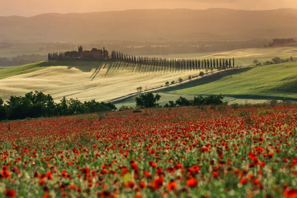 Snow-covered trees stand like frozen sentinels across the wintry terrain of northern Finland; tufts of golden grass punctuate the dry Andean plain as a lone volcanic peak rises beneath sweeping, otherworldly clouds; scarlet poppies ripple across rolling Tuscan hills as cypress-lined ridges glow in the warm, slanting light; and traffic trails sweep like glowing ribbons across Bixby Bridge, its soaring arch watching over the rugged California coast as dawn settles softly over the Pacific.