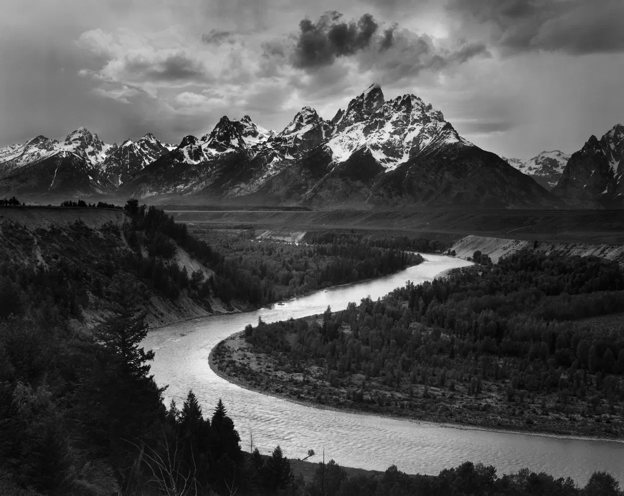 In works such as Clearing Winter Storm, Yosemite National Park (c. 1940) and The Tetons and the Snake River, Grand Teton National Park (1942), the scale and serenity of the natural world are rendered with almost symphonic control. The light falling across granite or snow becomes a kind of music — rhythm, contrast, harmony. His images are both representations of nature and meditations on our relationship to it, reminding us that observation itself can be an act of reverence.