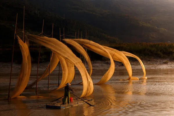 “I loved “Little Gods, an easy, first choice for me. Soft shades of blue frame the girls and provide a filter and backdrop for their colorful costumes and beautiful, expressive faces, especially their eyes. The embroidered cloth works as a compositional element and adds texture. The hands are perfectly placed and timed (love that one finger in the air!), and the hands applying makeup are captured for a perfect moment. The red hairband and thread complete the picture, grabbing my attention and drawing me into it. Congratulations!” — Michael Yamashita