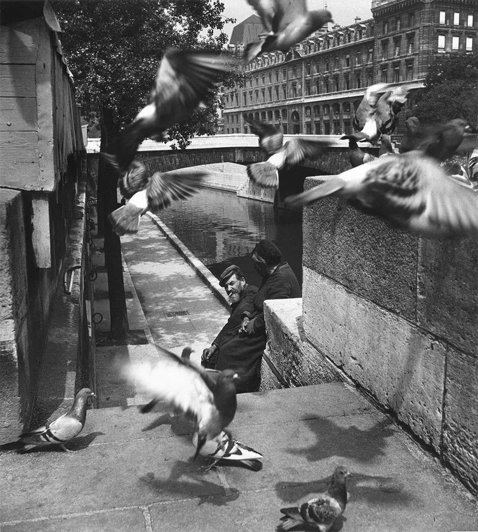 During this period, Stettner was closely involved with the Photo League and was part of a transatlantic exchange that helped introduce American audiences to French photographers, including Brassaï, Willy Ronis, Robert Doisneau, and Édouard Boubat. These exchanges were formative. Brassaï, whom Stettner openly admired, encouraged his attention to the everyday, while Stettner’s own insistence on material clarity and precision led him, famously, to work with a large-format camera on the streets of Paris, an impractical choice that reflected his commitment to detail and physical presence.