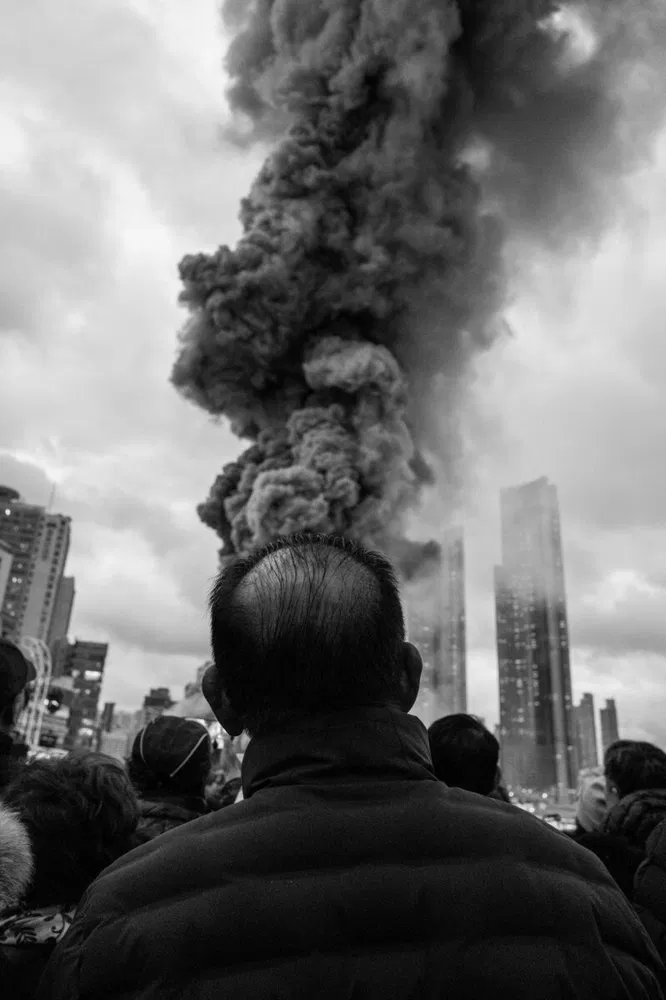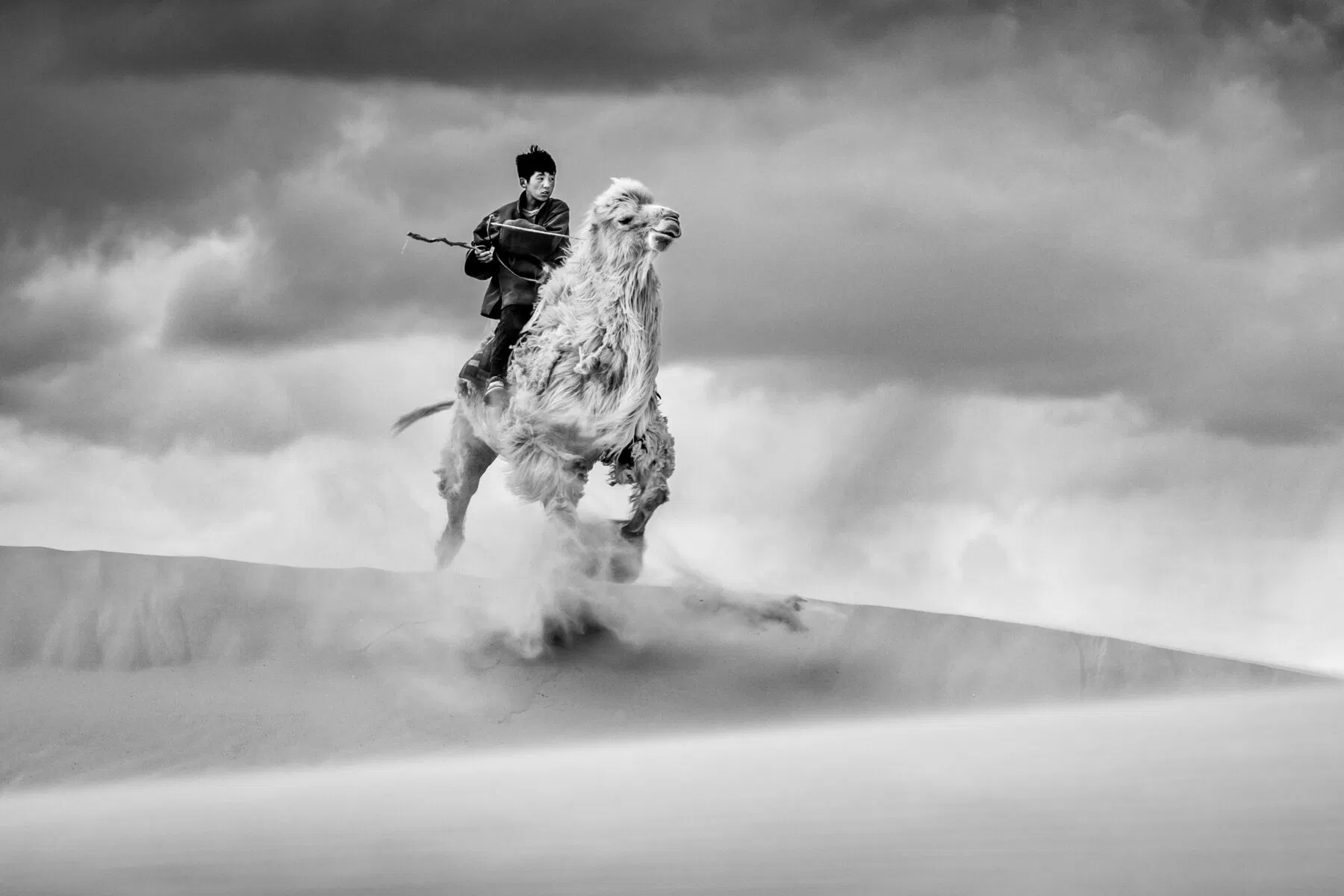 “A breathtaking image, a triumph of texture, composition, and monochrome tones. The interplay of movement and stillness creates a captivating scene: boys and buffaloes bask in the warmth of the water, shrouded in steam, while beyond them, the dark figure of a lone horseman stands like a silent sentinel, with snow-speckled landscapes fading into the background. It is a timeless image that showcases the enduring power of black-and-white photography, for this moment could belong to today or a century ago.”– The Independent Photographer Editors