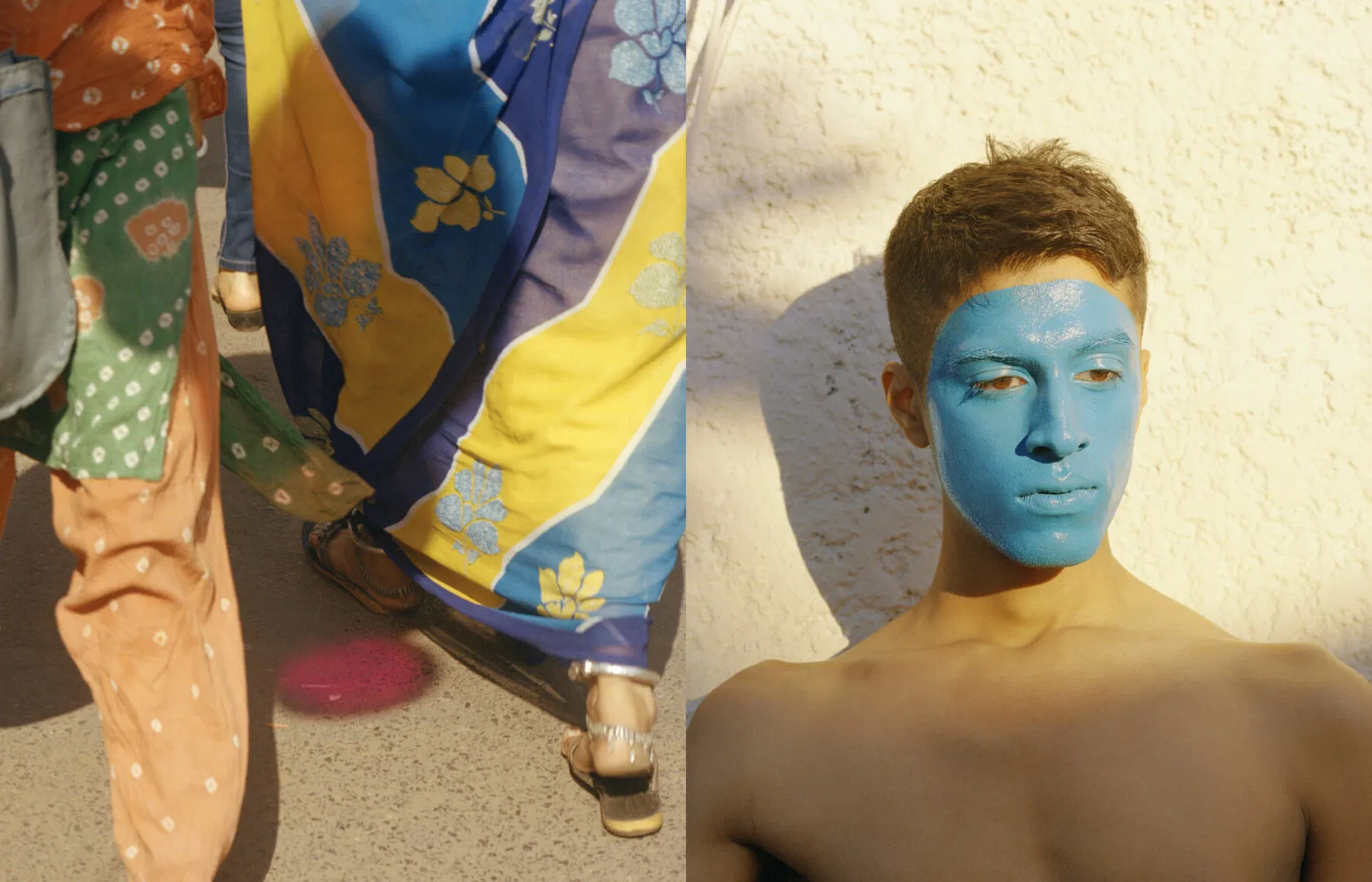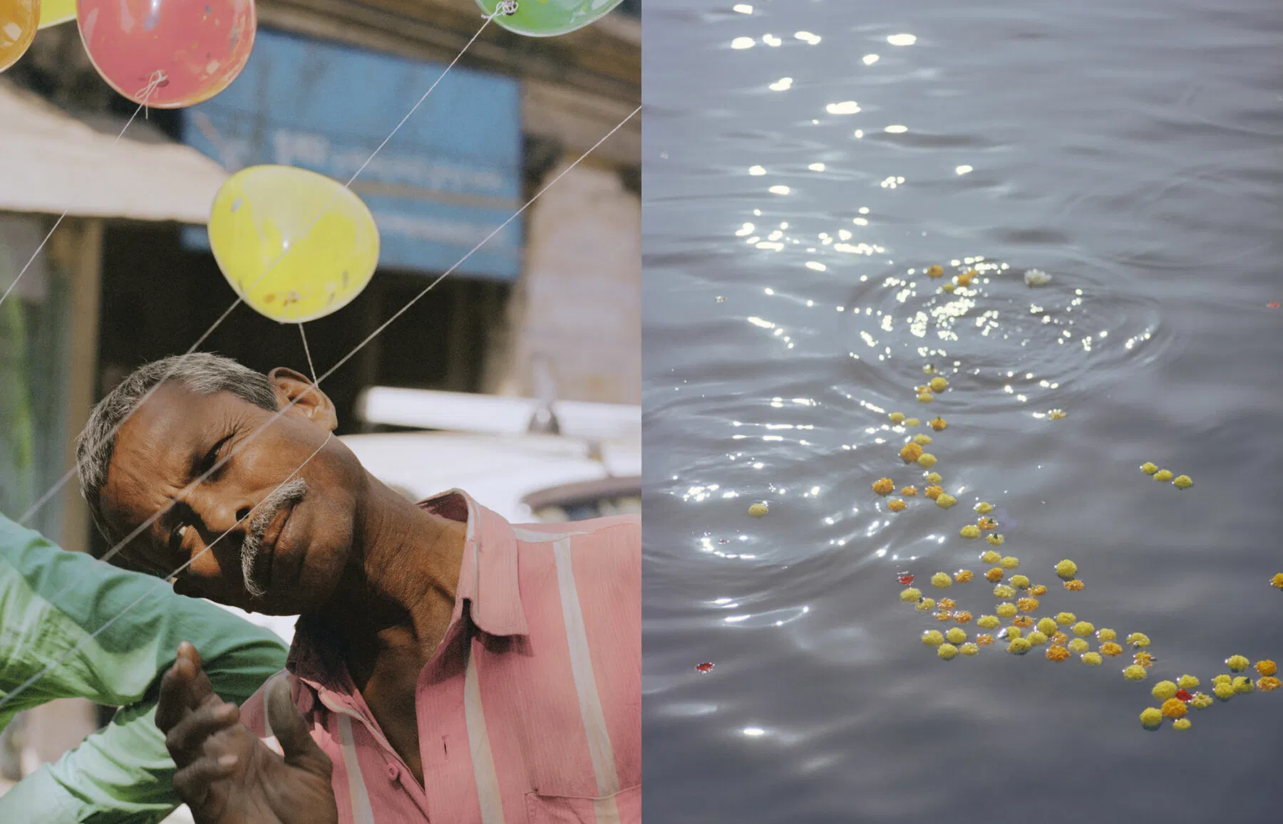 Coedel captures this conviviality beautifully. Sikh men in brightly hued turbans which mirror the myriad kites that punctuate the bright blue sky; young Muslims in monochrome, and Hindu women in brightly-hued attire; schoolchildren, police, and more. All are rendered in a soft pastel palette, subtle and tactile thanks to the analog format, and his masterful appropriation of the late afternoon sun.