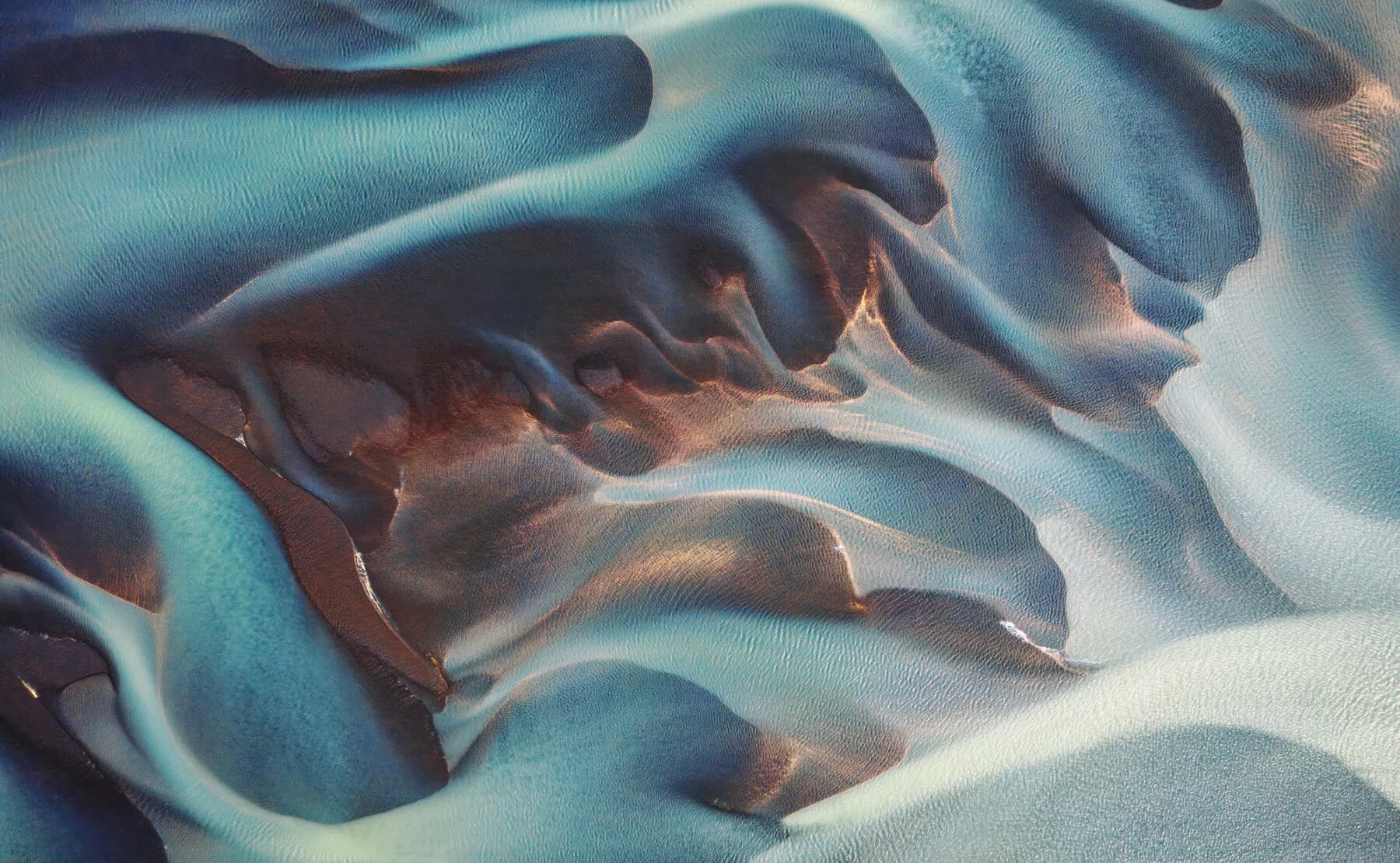 “I browsed all of the beautiful finalist images over and over, letting them soak in, allowing professional judgment and subjective emotion to mingle. This was the image that always pulled me back, always invited me to get lost in wonder. I know what it is: river sediments in Iceland. But in places, it echoes the forces of creation we see in space telescope images of galactic nebula where stars are born. In other places, it echoes the desert dunes, or perhaps arctic blizzard drifts. The patterns are primordial. But what struck me most is how this image was elevated over similar images by the pattern or ripples that lay over the whole image like a veil. Just wonderful.” — Jim Richardson