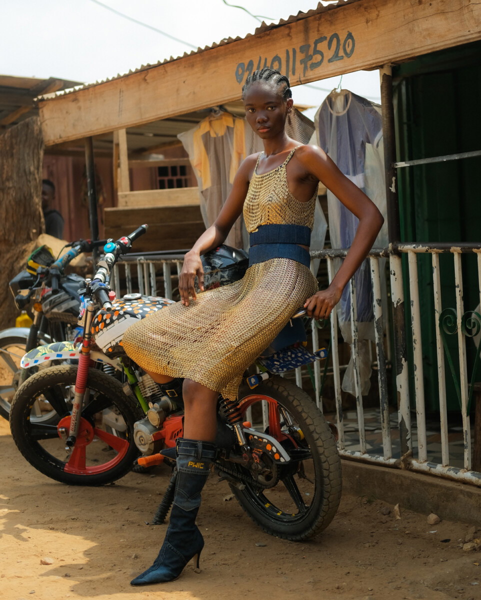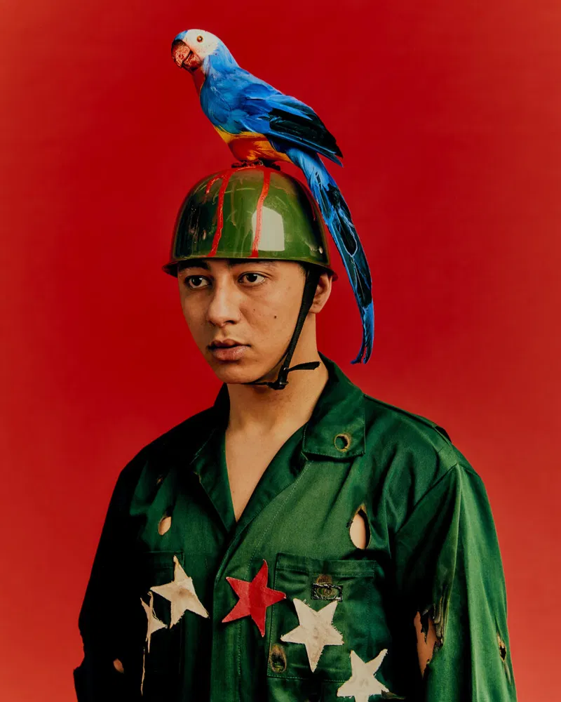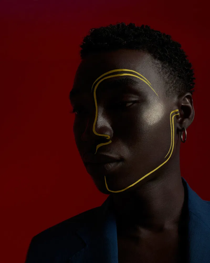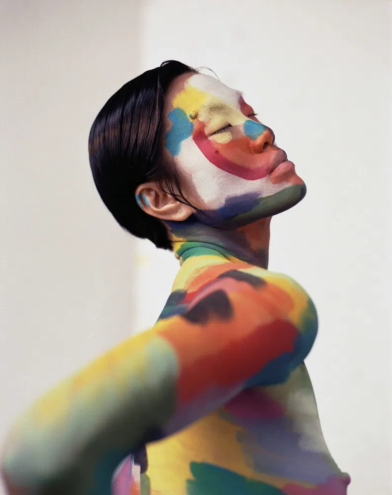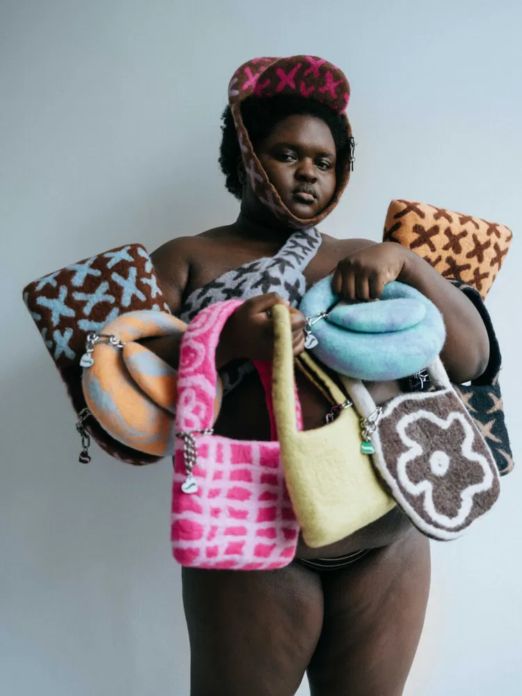 “I love how Destiny’s powerful and strong gaze takes up a playful meaning as she is holding all these colorful bags that look like candies. The natural light, as well as the neutral background, work perfectly at enhancing the beauty of the subject.” — Alessia Glaviano