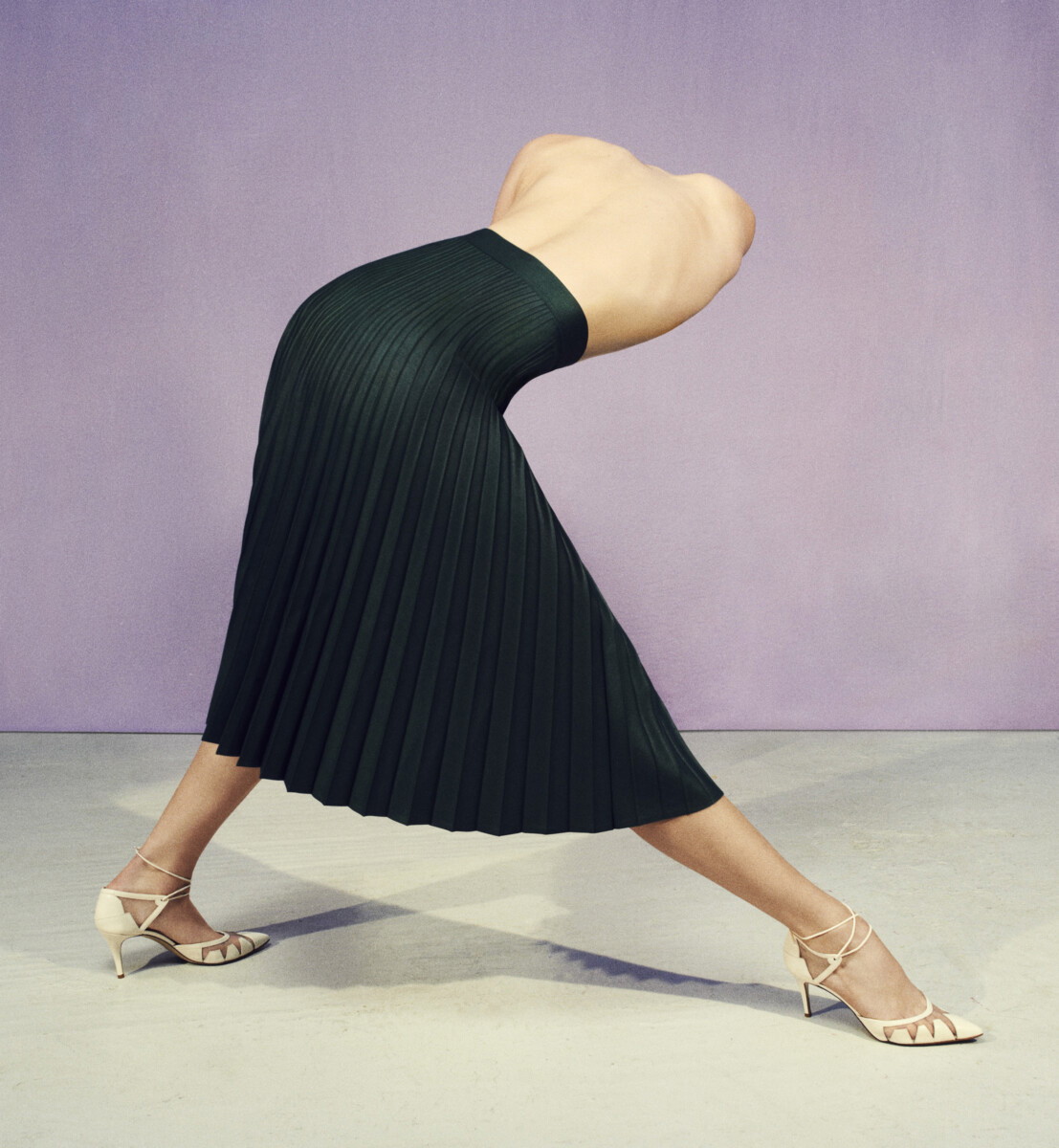 “Dmitrijs Hohlov’s striking portrait embodies the essence of fashion photography evoking the work of some of the genre’s most iconic exponents, whilst maintaining his own distinct visual dialect. The model’s contorted torso possesses a sculptural quality, a nod perhaps to the great modernist photographers of the nude form (such as Edward Weston and Ruth Bernhard) whilst the fact that her face is hidden from view, helps direct the viewer’s attention to her skirt, its striking, obsidian pleats, sleek and tactile against the soft pastel backdrop.” – The Independent Photographer Editors