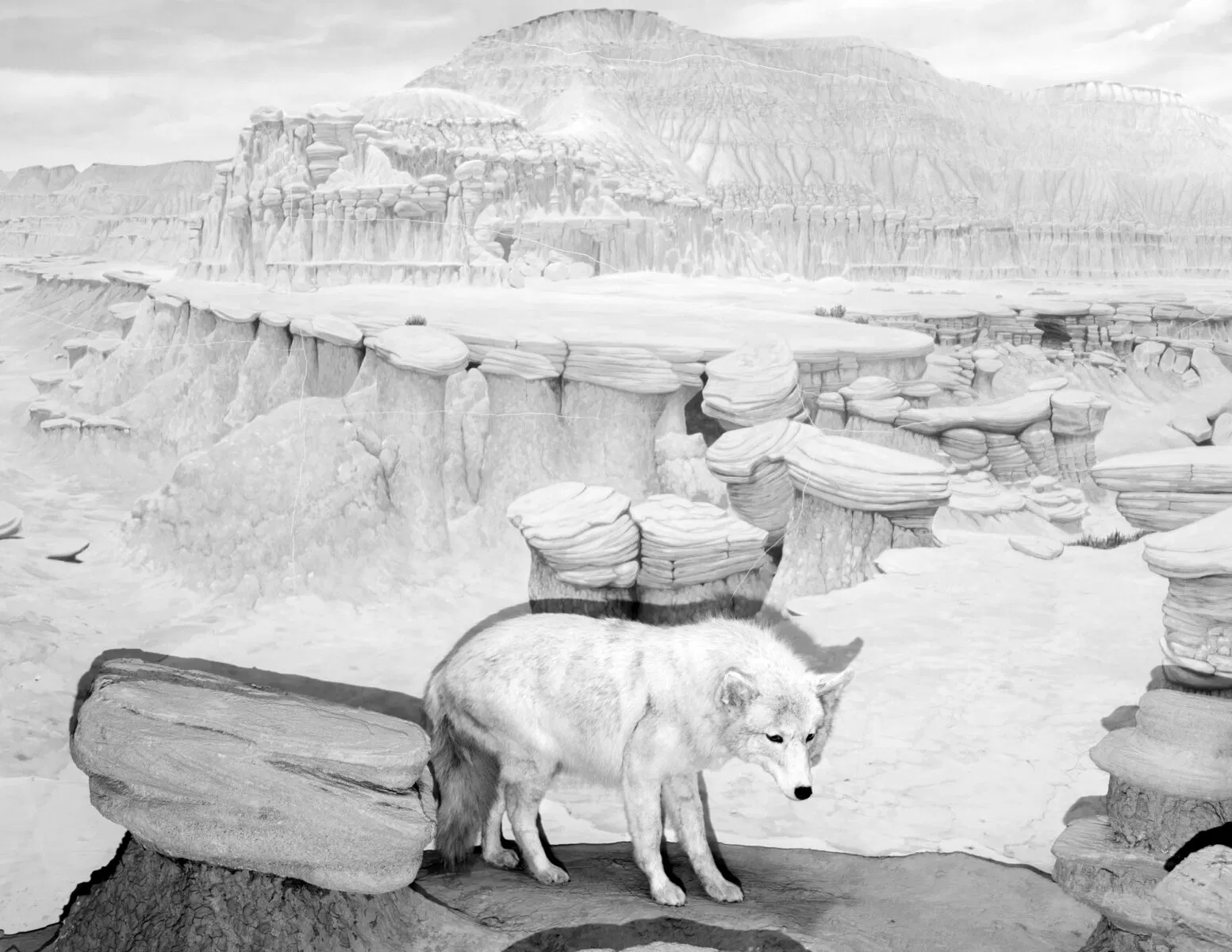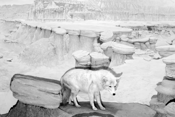 “Austin Cullen’s image is surreal and intriguing: an alabaster wolf framed against similarly hued rugged surrounds. Though the display ostensibly depicts the animal in its natural habitat, there is an incongruity to the scene, a sense of awkward artificiality, that perhaps illustrates our detachment from the veritable, natural world.” – The Independent Photographer Editors