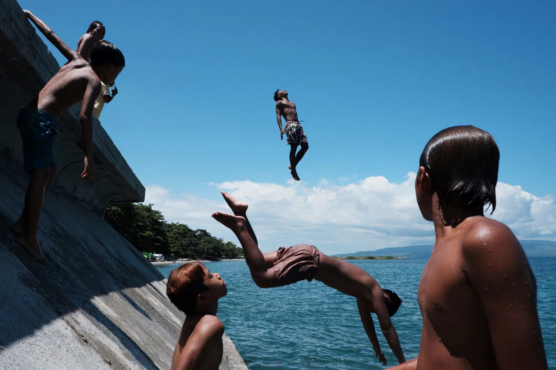 “Content and form are in harmony in this image. The predominant element is the kid that tries to balance out on the wall – it is also the strongest. Then there’s the white lining of the hat on the bottom left corner, the standing man on the right and, of course, the reflections of the black-clad men. A different alignment of the people on the top could work better. Color doesn’t play a distinct role, it might as well be black and white, maybe it would have been better. Overall, it remains a realistic depiction, still compelling.” — Nikos Economopoulos