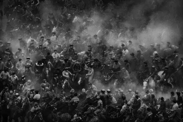 “This epic shot comes from the village of Uzgen, Kyrgyzstan, and pictures dozens of horses and men in fearless combat as they fight for possession of a headless goat carcass. It is the spirit of the ancestors and a modern play at the same time. Men and horses become almost one as they wrestle each other. The dust lifted by the fight circles the bodies of all of them. A photo to slowly be explored in its details while thinking that for just one day a week Kyrgyz can imagine themselves being warriors.” — Carol Körting