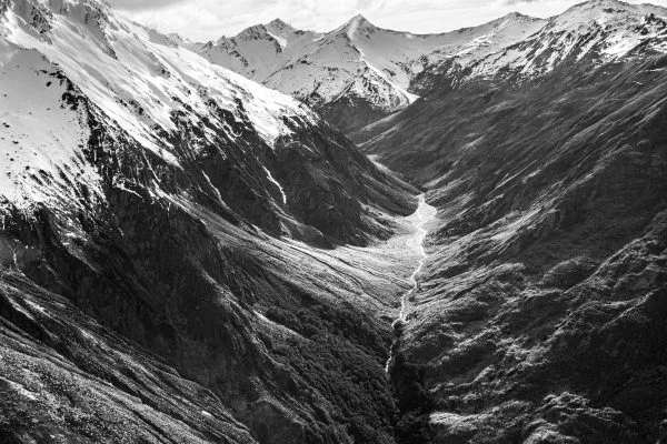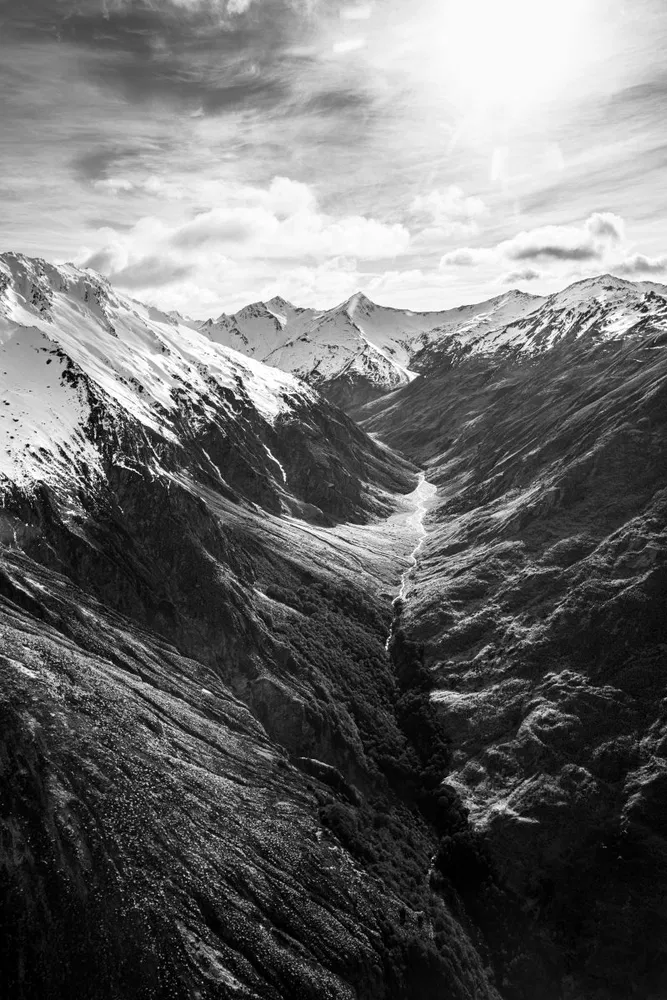 Taken on a glorious winter’s morning flying in a helicopter over the Shotover Valley region in Queenstown, New Zealand. There was fresh dumping of snow the night before which was awesome to see from above. © Luke Clements