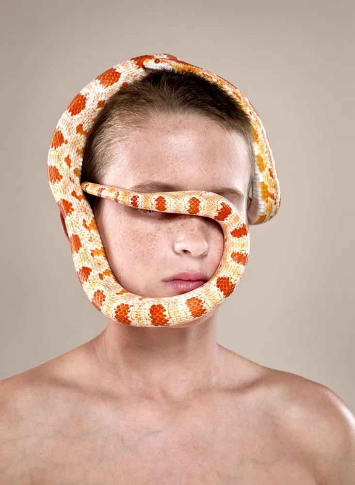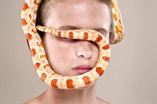“A compelling example of color’s ability to greatly enhance the potency of an image: the bare naiveté of the subject, classic portrait framing, and impeccable appropriation of subtle lighting, contrasts dramatically with the striking lucidity of the snake’s form, thus enhancing its ominous incongruity and symbolism.” – The Independent Photographer Editors