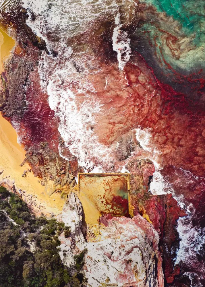 “I selected this image by Lainey Foster as the winner as it exhibits so many of the elements that I look for in a successful photograph. The way that Lainey has shot the image from above means that the landscape is flattened and abstracted from the every day, the dramatic and out of place red of the algal bloom only increases the viewers’ disorientation and our brain has to work hard to understand what we are looking at, capturing and holding my attention. I love that although the Australian coastline is so familiar to me, I have never seen it look quite like this before. Overall, an intriguing and beautifully realised image.” – Shannon Ghannam, Magnum Photos Education Director