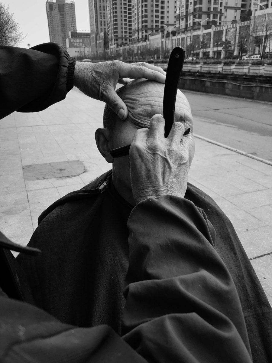“More than just an excellent street scene, the entire composition, mood and impeccable timing of this portrait of a man receiving a shave on the streets of China is fantastic. The framing right above the arm leading us up to the black vintage straight razor, the precise and firm position of the barber’s hands forcing the customers skin into wrinkles; A face turned into an abstract figure, eyes hidden away in a seemingly desolated urban space – All in classic and powerful black and white contrast. Timeless, truly.” – The Independent Photographer Editors