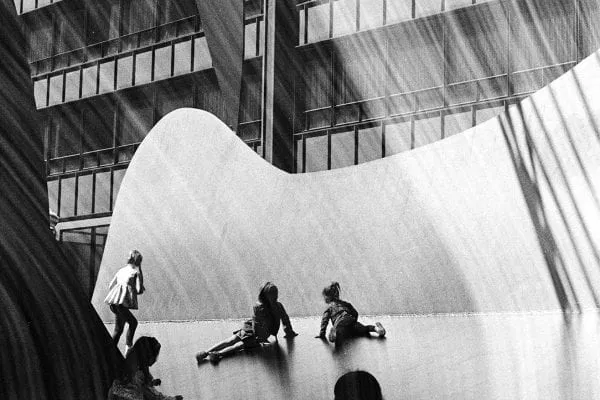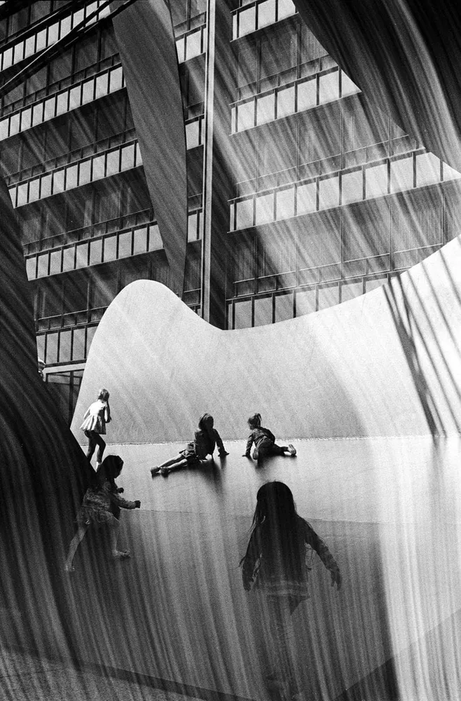 “A wonderfully seized scene of life: the sensation of floating above the ground with young girls lifted by fabrics – evoking a cape – offers a magical and aerial moment.